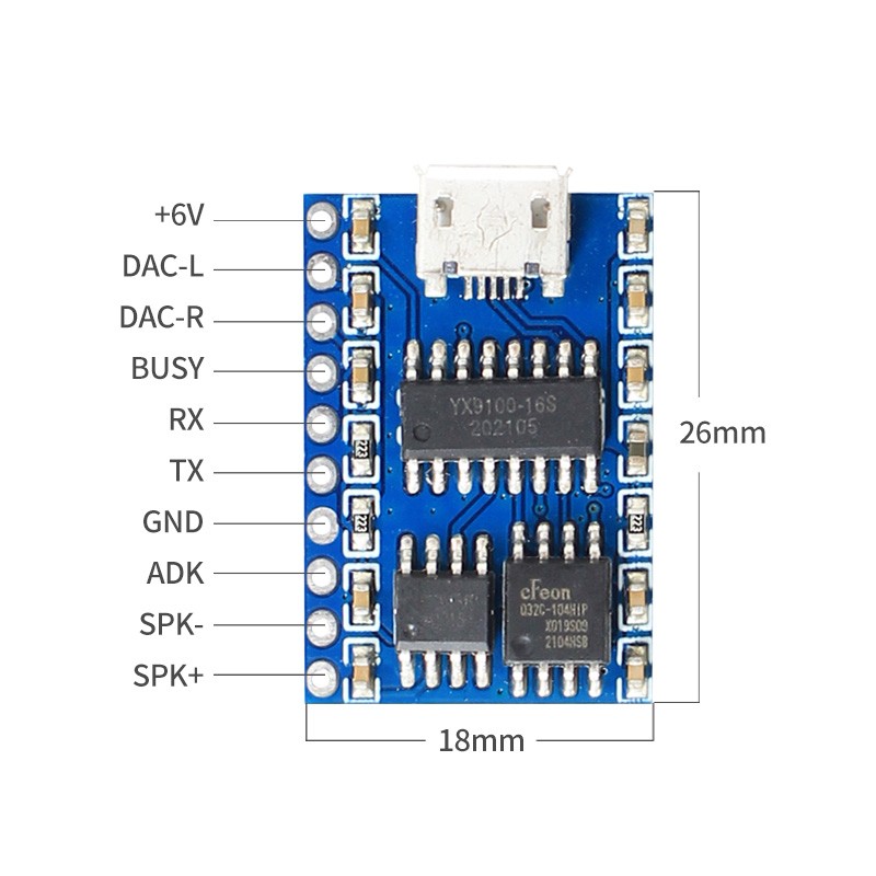 狮子会YX9100-10P是一个提供串口的语音模块,,,集成了MP3、、WAV的硬解码。。。同时软件支持工业级别的串口通讯协议,,,以SPIFLASH作为存储介质,,,降低了本钱同时也增添了产品的稳固性。。。通过简朴的串口指令即可完成播放指定的语音,,,以及怎样播放语音等功效,,,无需繁琐的底层操作,,,使用利便,,,稳固可靠是此款产品的特点。。。另外该模块也是深度定制的产品,,,集成了3W的功放,,,直接外接喇叭即可放音。。。
